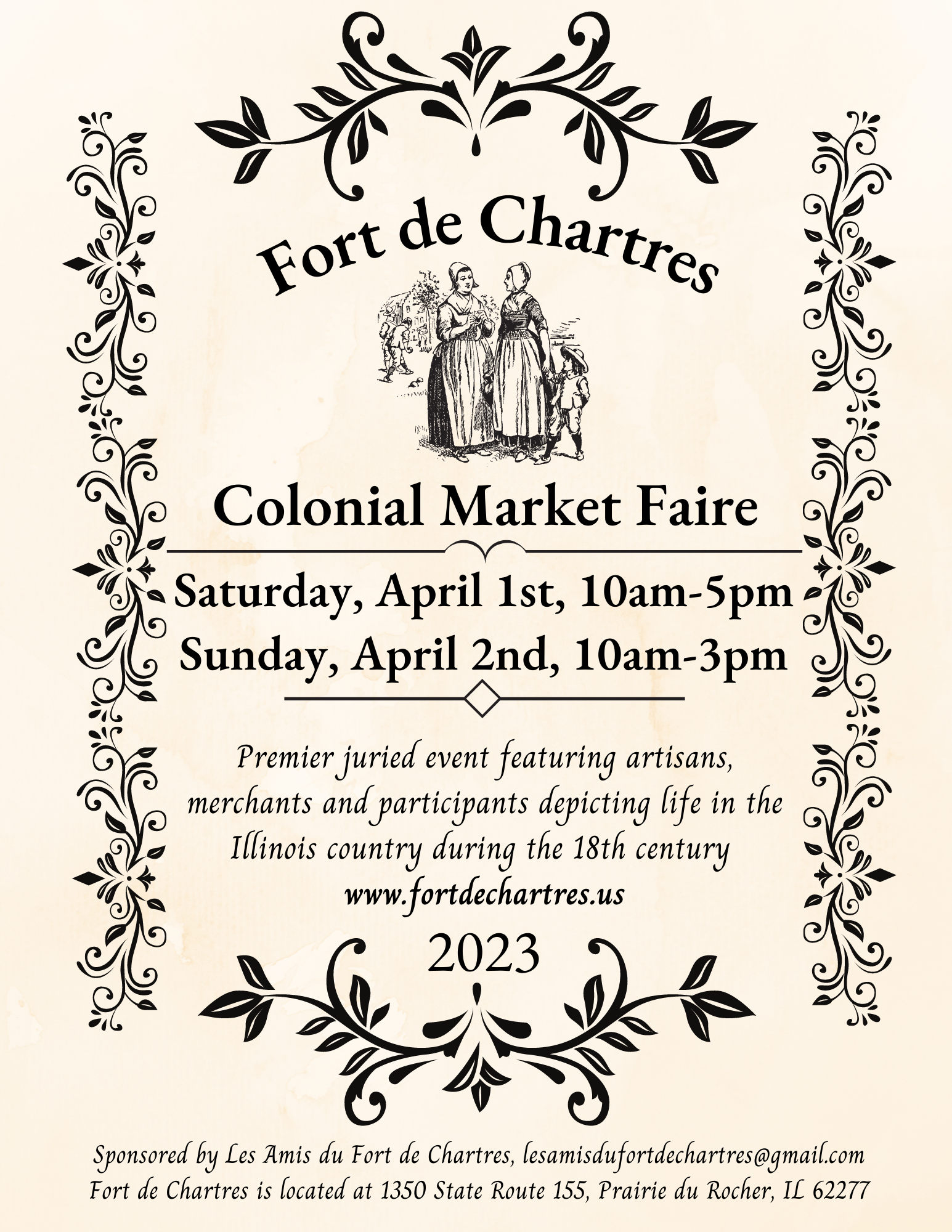 Les Amis du Fort de Chartres cordially invites you to the newly renamed “Fort de Chartres Colonial Trade Faire” juried event, April 1st & 2nd, 2023.